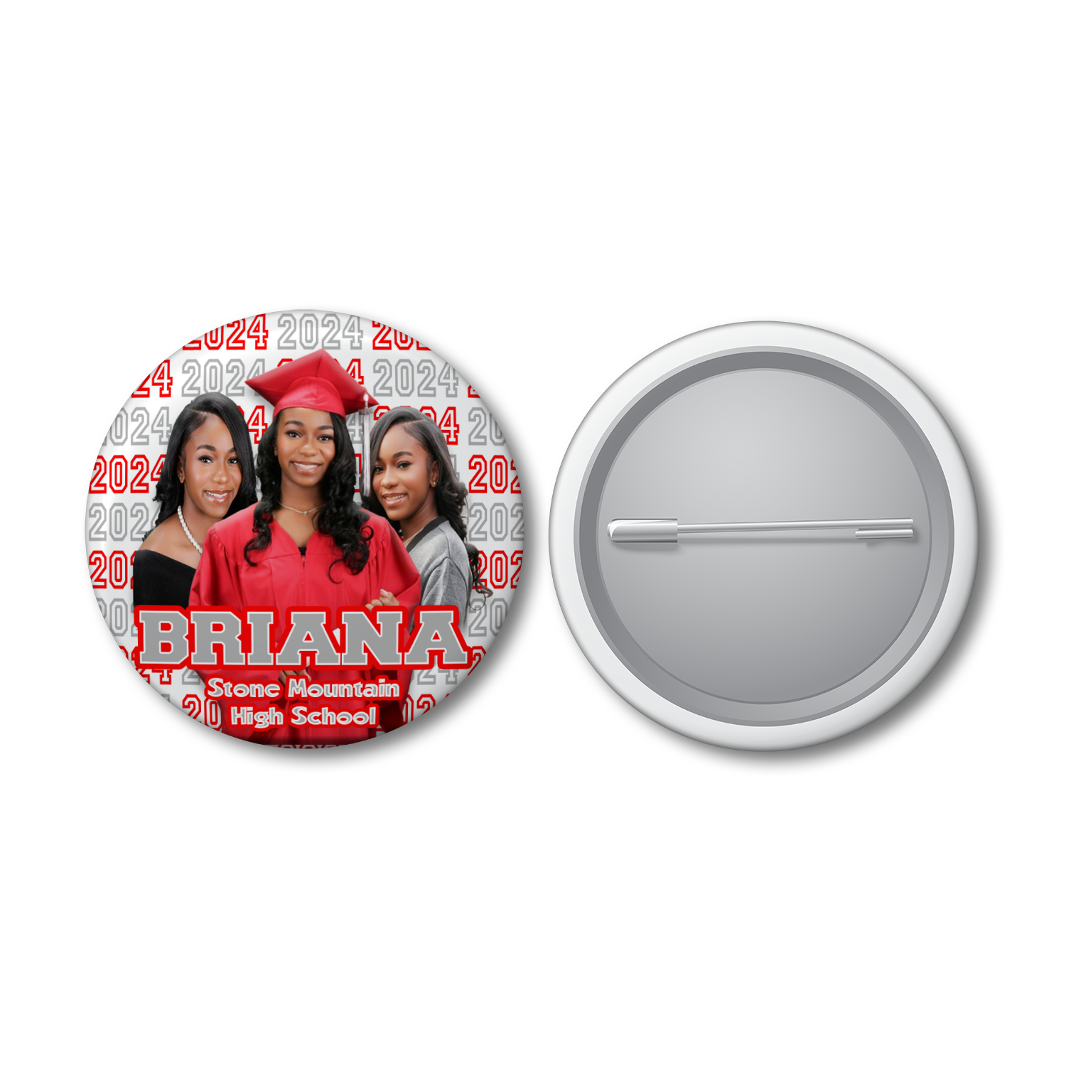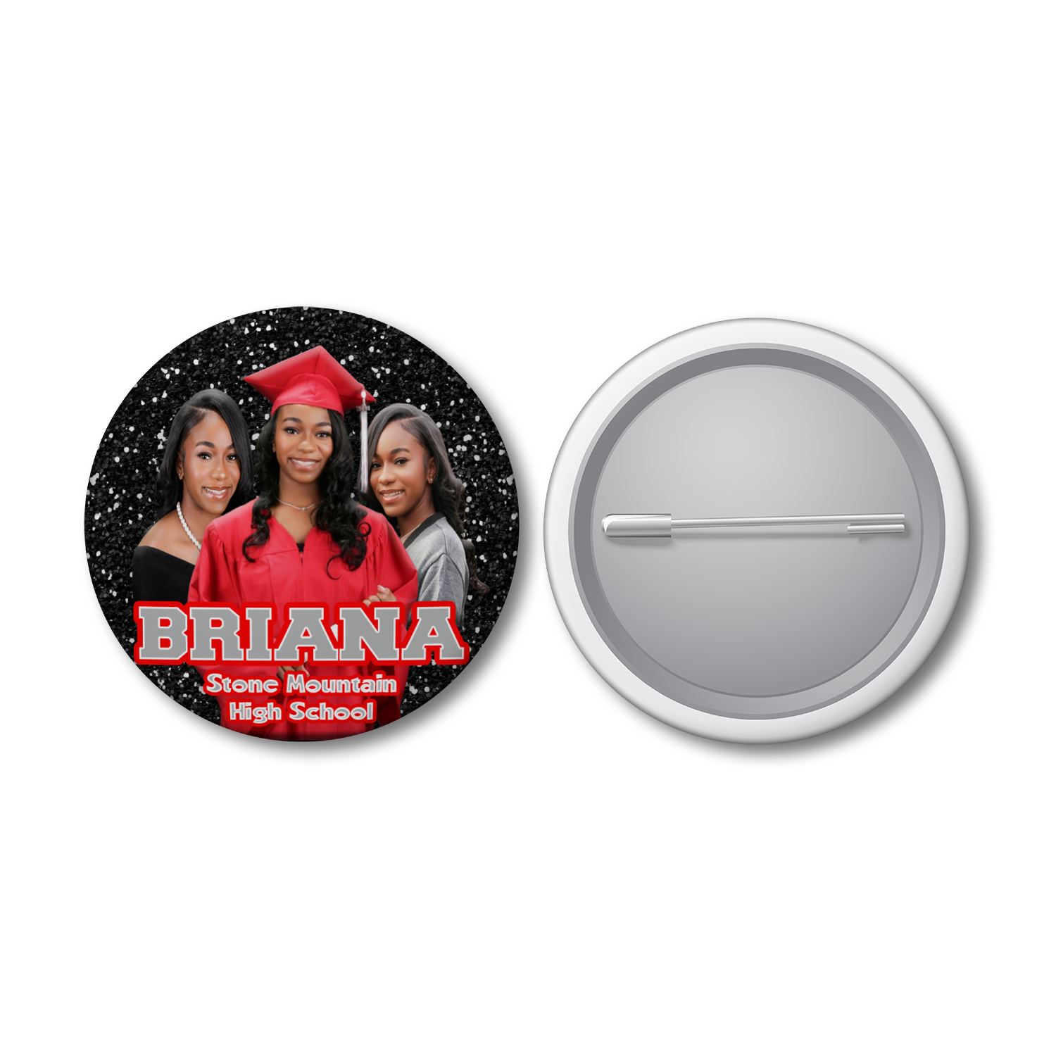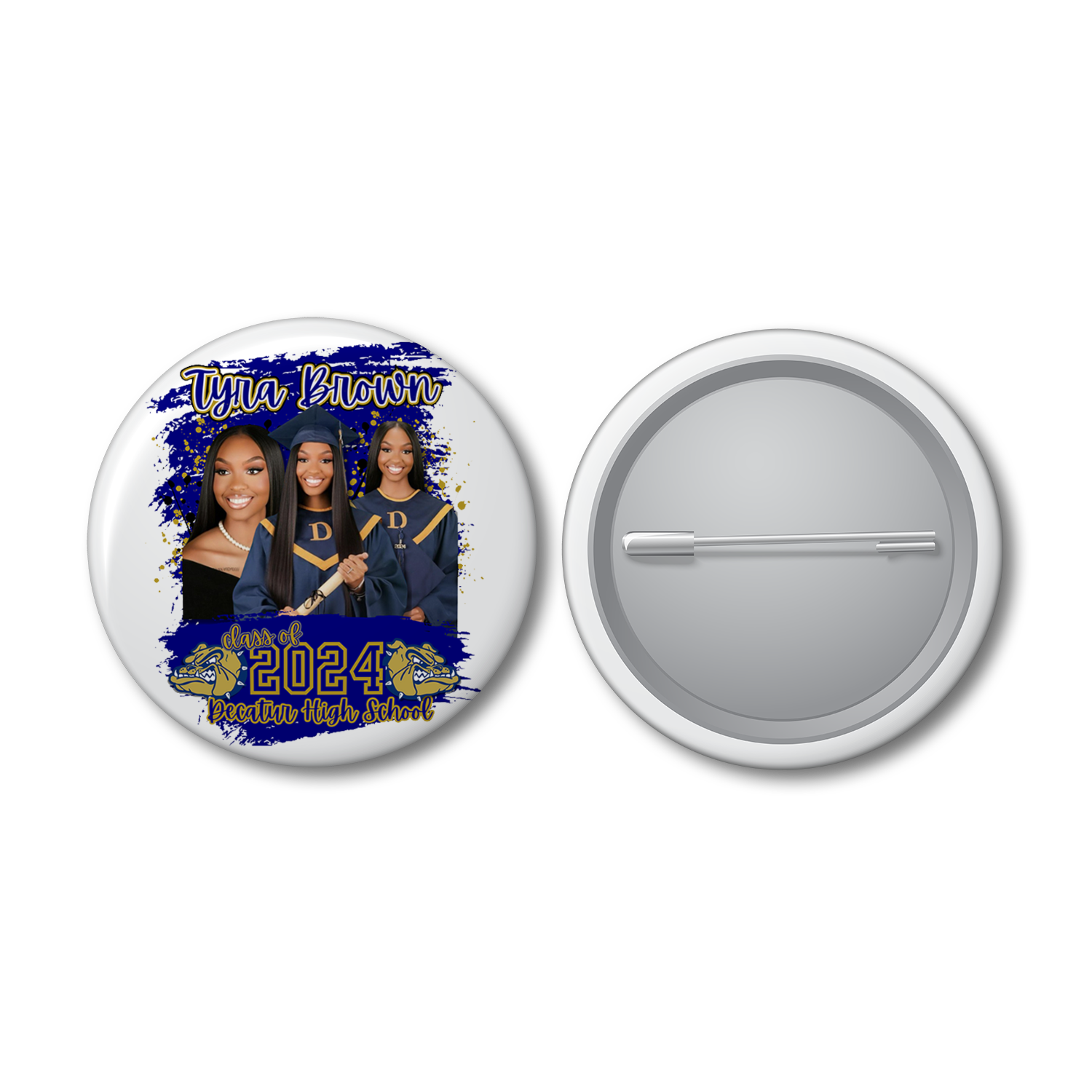 Create a unique flair for your graduation celebration with our custom designed 2.25 inch buttons. Made with a durable steel pin style backing, these buttons are not only stylish but also easy to attach to any clothing or accessory. Perfect for commemorating this special accomplishment.