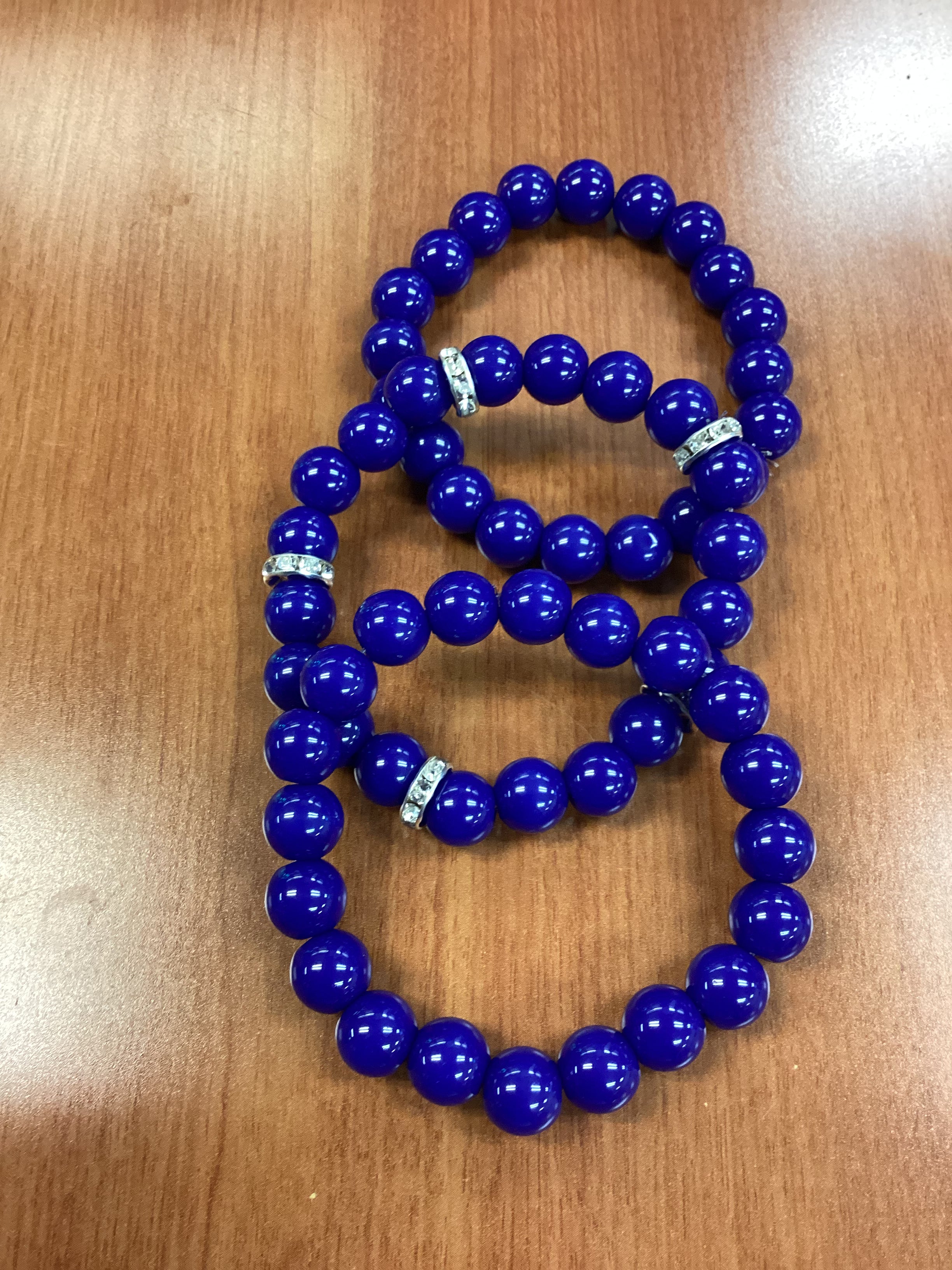 Blue 10mm glass beaded bracelet. You will only get one bracelet.