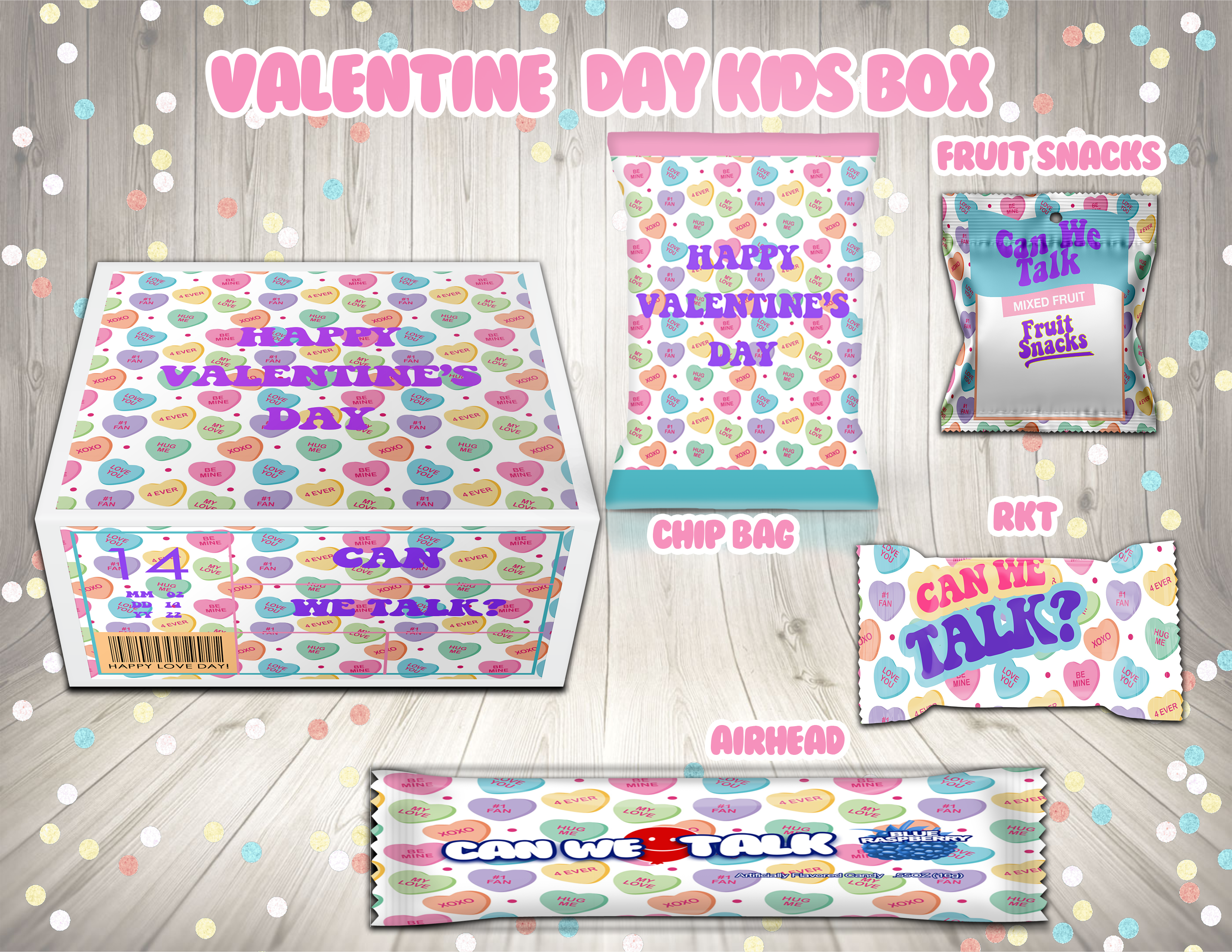 Our kid boxes are the best Valentine gift for the little ones. It combines a plush toy, candy and treats ALL in one! We have the conversation heart theme for the girls and King of Hearts for the boys.